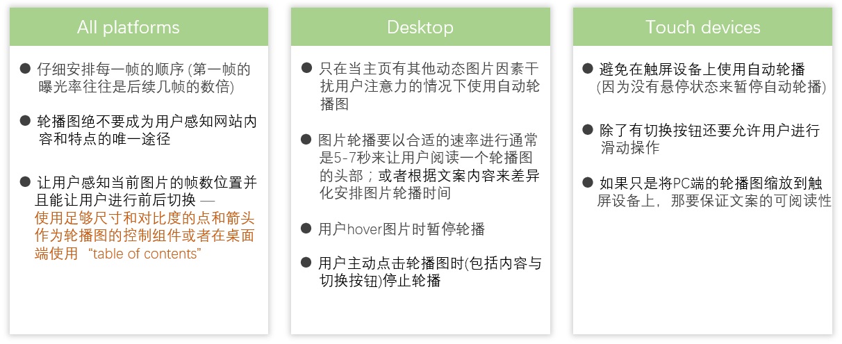 原則 1:移動端沒有 hover 狀態因此盡量避免自動輪播