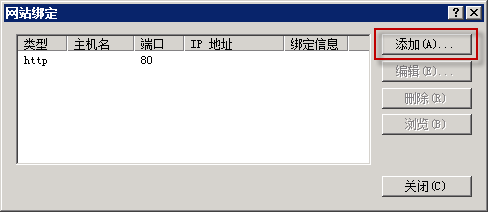 打開網(wǎng)站綁定界面后,點(diǎn)擊添加